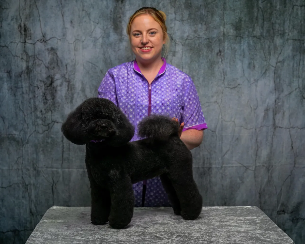 My name is Abi, and I have been passionate about dog grooming for as long as I can remember. As soon as I was old enough to hold a dog brush, I was brushing all of our family and friends’ dogs, and my parents often had to hide the scissors to stop me giving my teddy animals haircuts. My journey into grooming began at the age of 15, when I welcomed my first Standard Poodle, Monti, into my life. Showing him in competitions sparked a lifelong interest in grooming, styling, and canine care.